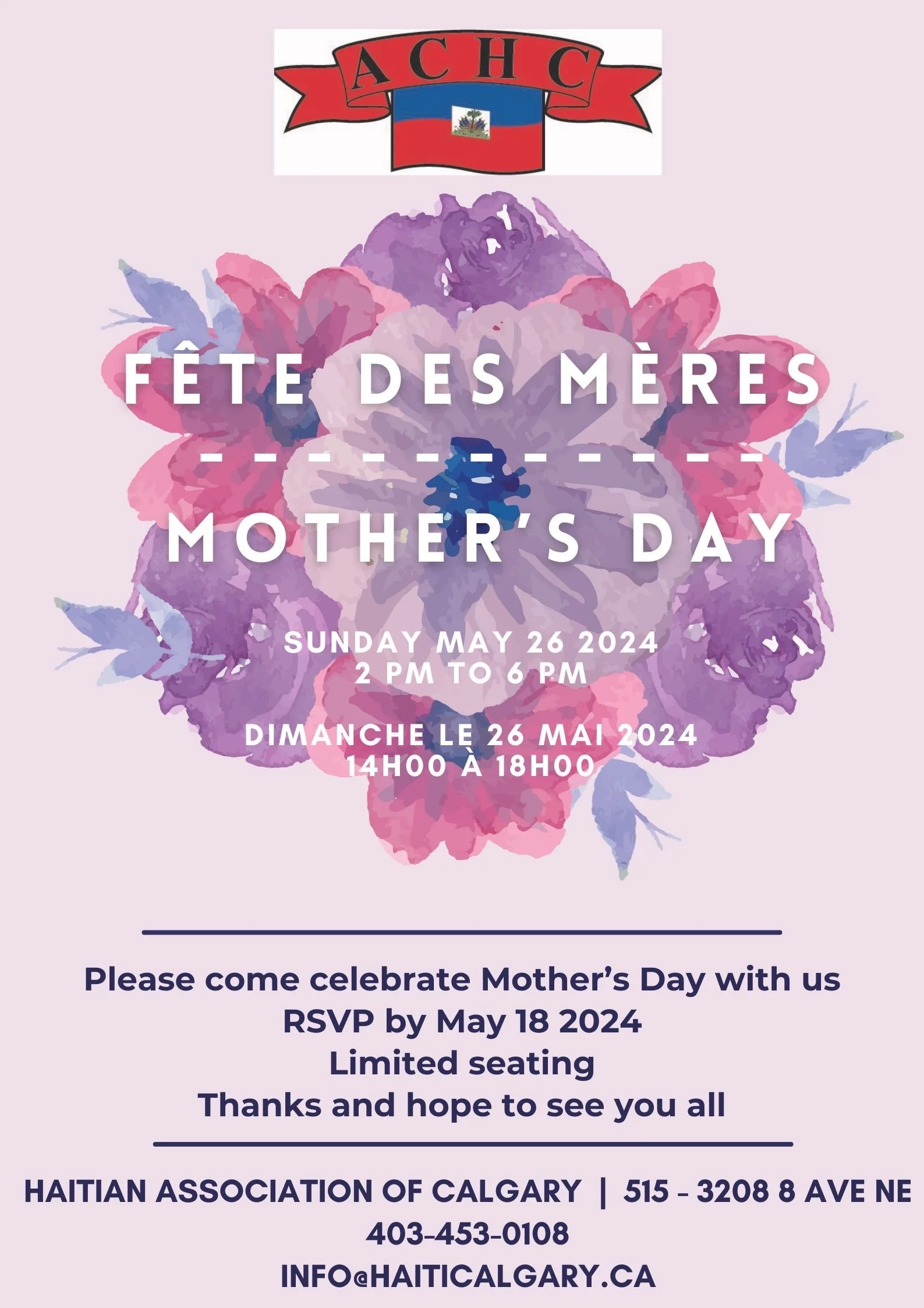 Haitian mothers are so special, they get to celebrate mothers day twice. The men of the association will be celebrating our mothers. Limited seating, please RSVP.